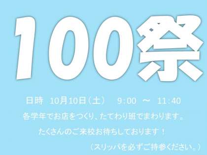 今週土曜日(10月10日)は、100祭です!