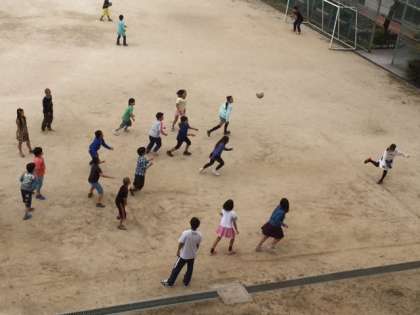 最近5年生ではドッヂボールが流行っています。休み時間はもちろんのこと放課後もたくさんの子が残って男女仲よく遊んでいます。熱中しすぎて近くの池に入ってしまうこともしばしばあるようです。(もう少し池から離れてすればいいのに…)今日のふれあいタイムも下校時刻ぎりぎりまで泥だらけになりながら遊んでいました。砂埃もけっこうとんでいるようなので、家に帰ってからの手洗い・うがいの声かけをぜひよろしくお願いします。