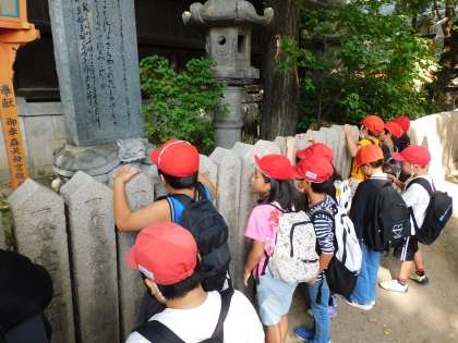3年生が生野区にあるコリアンタウンに見学に行きました。御幸森神社では「猪飼野」地域の歴史を感じたり、商店街ではキムチの種類をインタビューで聞いたり、しっかりとフィールドワークをしました。帰りには「日本書紀」にも出てくる鶴橋の町の名前の由来になっている「橋」の石碑を見ました。韓国朝鮮の文化を学んだ一日となりました。