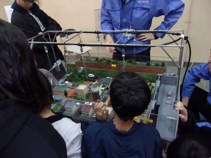 大雨が降ったとき都市にどのような水害が起こるのかを模型を使って再現しました。車が流されたり、家が流されたり、マンホールが噴き上がったりする様子を見て、水害の被害の大きさを確認することができました。