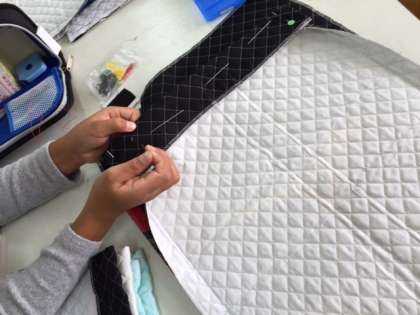 はじめは恐る恐る使っていたミシンも練習をすれば、このとおり!今ではきれいにぬうことができるようになりました。