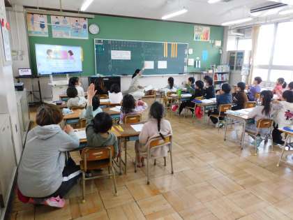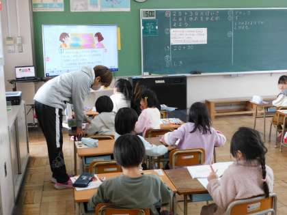 算数科「たしざんとひきざん」の学習をしました。20+30の計算の仕方を考えました。図を使ったり、10でまとめる方法を使ったりしながら、計算の方法を考えました。先生の話を一生懸命聞きながら学習を進めていました。