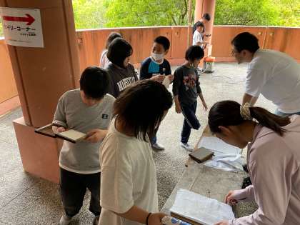 小雨の中、オリエンテーリングを終えて、紙すき体験をしました!