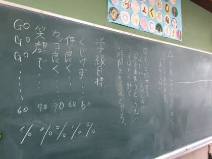 学級活動の時間に「今、学級目標はどのくらい達成できているのか」についての話し合いをしました。今回の議題の提案は学級会係からでした。