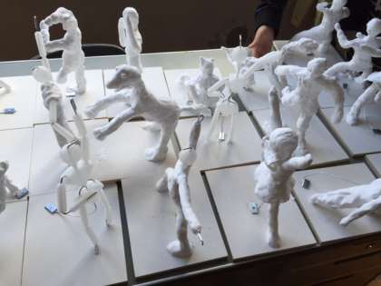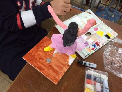 図工の時間で芯材と紙粘土を使って人形を作りました。すごくユニークな作品がたくさんできました。