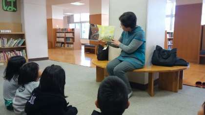 よみきかせの時間に、1年生から〜4年生の児童が集まりました。