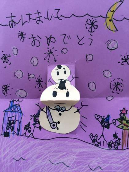 図工の時間に、飛び出すクリスマスカードとあけましておめでとうカードを作りました。好きな色の画用紙に、サンタさんやトナカイ、鏡餅やみかん、雪だるまを描きました。その日のうちに持って帰っているので、是非、見てあげて下さい。