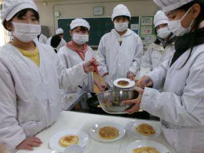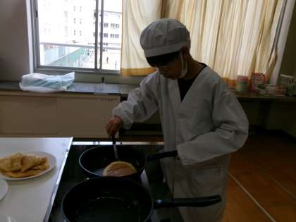 出来上がったパンケーキに好みのシロップをかけて、おいしくいただきました!