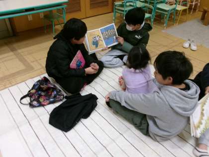 グループに分かれて、年長組の子どもたちに絵本を読みました!