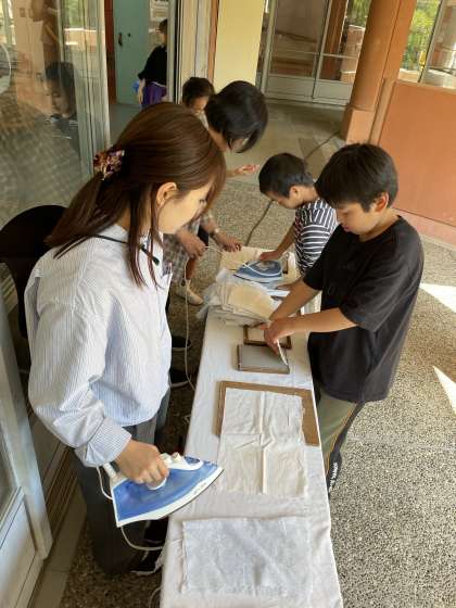 ケナフパルプを使い、絵葉書サイズの紙すき体験をしました。