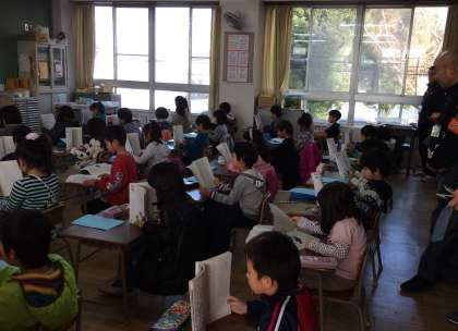 先週から、国語で「スイミー」を学習しています。小さな魚のスイミーが、海の中の色々な生き物と出会い、どんなことを思うのかというお話です。この日は、校長先生をはじめ、他の学年の先生も、1年生の様子を見に来てくれました。一人ひとりがスイミーの気持ちになれたんじゃないかと思います。