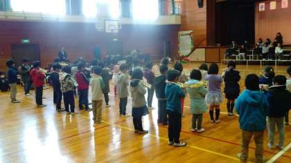 卒業式まであと2週間ほどとなった3月はじめ、『卒業生を祝う会』がありました。1年生はこれまでお世話になった6年生に、お礼の呼びかけの言葉と感謝の気持ちを込めて,ピアニカを演奏しました。練習以上に大きな声が出て、演奏のメロディーもバッチリでした。次回の発表の場である入学式が楽しみです。