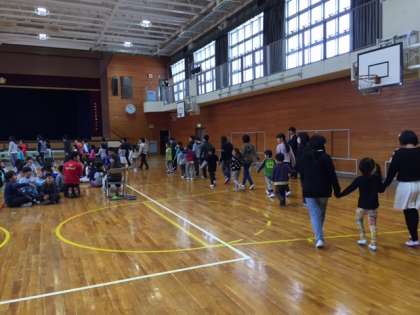 「1年生をむかえる会」では、最高学年として「ミッキーマウスマーチ」の合奏をしました。