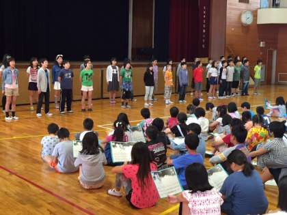 今朝は、音楽集会が行われました。6年生がみんなの前で「翼をください(2部合唱)」を披露しました。6年生は表情を作り、すばらしい歌声を響かせていました。聞いている子どもたちも真剣に6年生を見つめ、その合唱のすばらしさを感じているようでした。