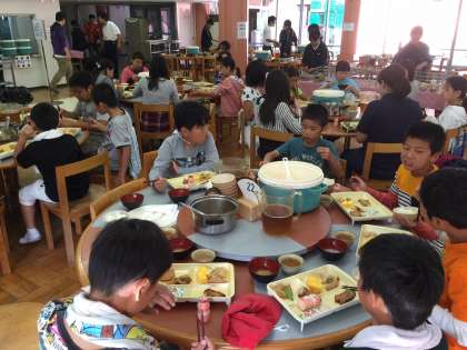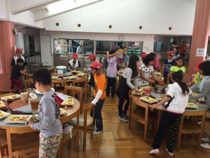 2日目ともなると、手洗いから配膳まで何も言わなくても、周りの様子を見て、協力して準備ができるようになりました。