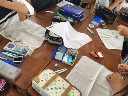 なんの色も模様もない真っ白なガーゼのハンカチですが、これから、1年生と一緒にする活動の中でこのハンカチが大変身する予定です!
