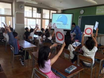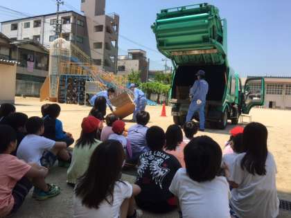 ごみについては、社会の授業で習った普通ごみ、資源ごみについて復習することができました。子どもたちは習っている内容だったので、手を挙げて活発に発表していました。