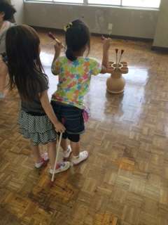 トゥホでは、的を狙って「入った。」「こんなに近いのに入らないや。」と楽しんでいる様子がうかがえました。