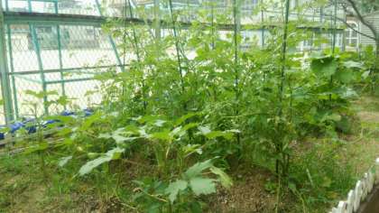 2年生の「にこにこ畑」は、収穫期を迎えています。
