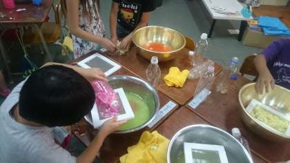 色がついたパルプはとってもきれいで、子どもたちも大はしゃぎ。