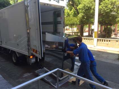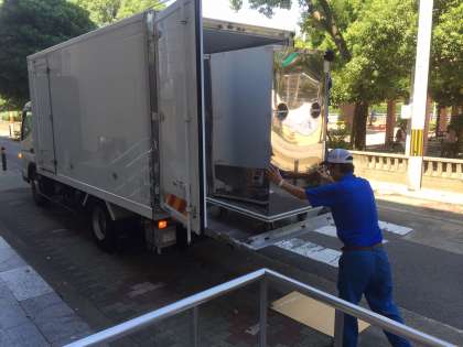 中学校へ運ぶため、給食を積み込む写真を紹介します。