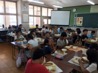 今日から2学期の給食が始まり、子どもたちはうれしそうに食べていました。おかわりをする子がたくさんいました。