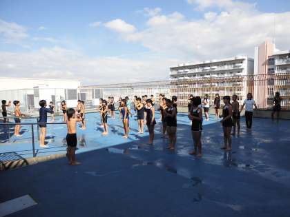 9月3日(土)に土曜授業があり、1時間目に5・6年生でプールに入りました!夏休みの夏期教育活動でも一緒に入っていたので、みんな楽しそうに活動し、一人一人がめあてをもって課題別練習に取り組んでいました。