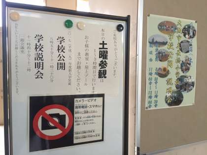 学校公開・説明会では、来年に小学校に入学予定の子をもつ保護者の方が、たくさん来られ、子どもたちの学習の様子を見たり説明会に参加されたりしていました。