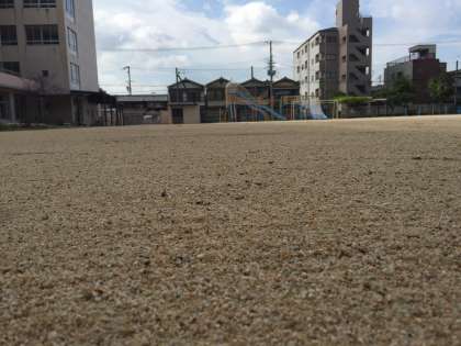 ちょっと写真ではわかりずらいですが、運動場ににがりをまきました。風が吹いたときに砂ぼこりが立たないようにするためで、定期的に行っています。砂ぼこりがたたないだけで、気分よく運動会の練習に取り組めます。運動会当日も大丈夫なはずです。
