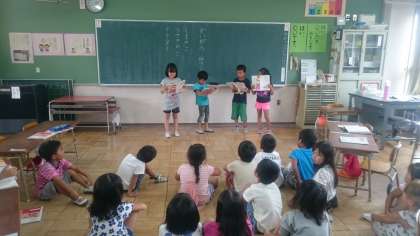 音読をした5班さんも上手でしたが、その後「5班のよかったところ発表会」も素敵でした。「くまの子が悩んでいたのが分かった」「貝殻を耳に当てていてよかった」「長いのに一生懸命読んでて上手だった」など、友だちのいいとこ見つけをする子どもたちに、一人で感動していました。