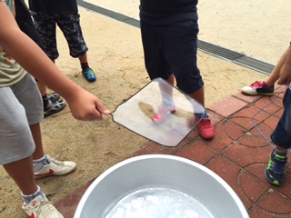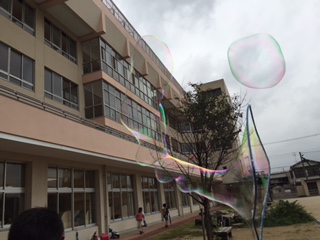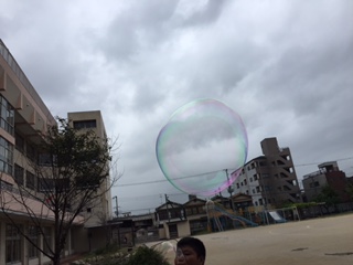 大きなシャボン玉を作るのはなかなか難しかったのですが、みんなとても良い顔をしていました。