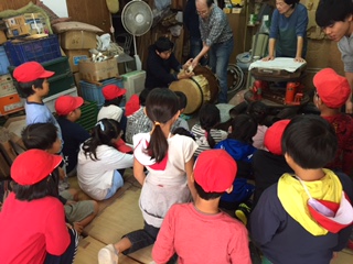 振り返りでは、「実際に作っているときの音が体に響いてすごかった」「音が変わっていてる」「直径2M75CMの太鼓があるなんてびっくりした」などの感想がありました。