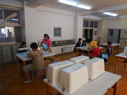最初はミシンを安全に使うための準備やルールを確認し、糸を使わずに作業をする『からぬい』をしました。みんな興味津々でミシンに向かって真剣に取り組んでいました。来週から実際に糸を用いてミシンで布を縫う練習をして、最終的にはじぶんだけのナップザックを作る予定をしています。お楽しみに♪