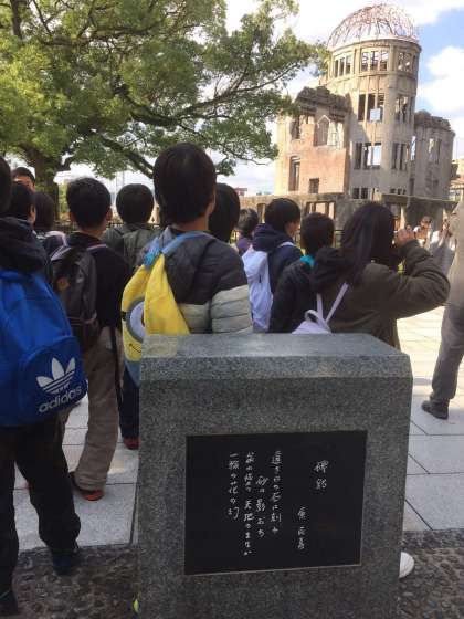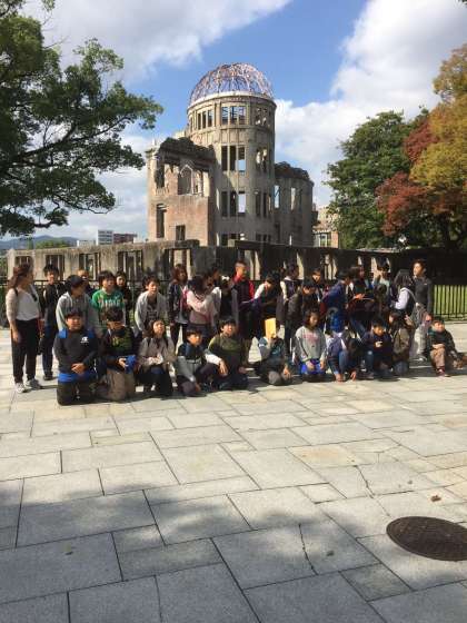 明日の朝、少しでもゆとりを、との思いから、2日目に予定していた記念撮影を「原爆ドーム前」で行いました☆