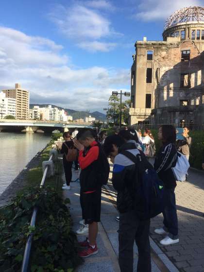 平和公園では、原爆が投下された8:15に平和を願う鐘が鳴らされます。その鐘の音を聞いて平和公園を後にします。