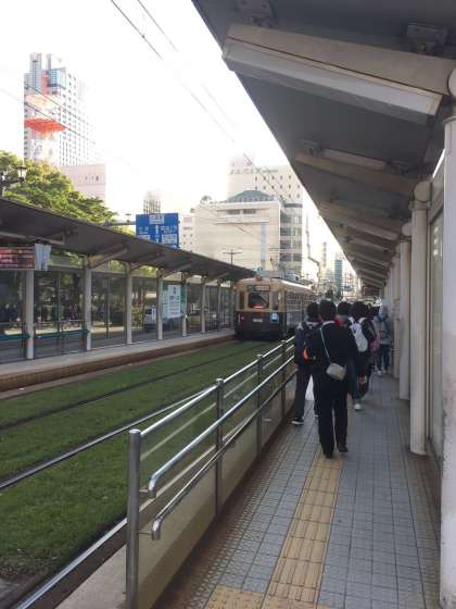 修学旅行21 広電で宮島口に向かいまーす(^^)