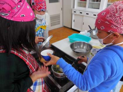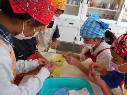 どの班も班で協力して調理し、個性的で美味しいみそしるが完成しました。また、今回は最初に“煮干し”からだしを取ることを活動の中に取り入れました。みそしるをさらに美味しくするために、手間暇かけてだしを取ることの大切さも学習しました!