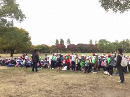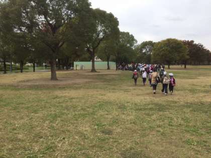 予定通り、鶴見緑地公園に着き、先ほどタテ割り班でオリエンテーリングに出かけました。