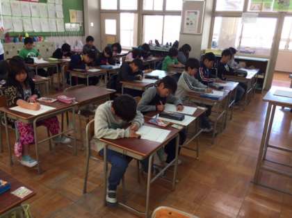 縦割り班のメンバーでポイントを回ったことや、お弁当を食べたことなど楽しく活動できたことを一生懸命かいていました(^o^)丿