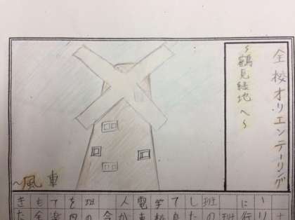 昨日の鶴見緑地での全校オリエンテーリングを振り返り、思い出を絵日記にかきました。