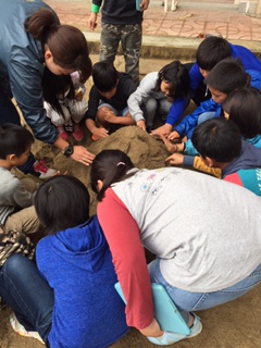 班でどんなコースにするか話し合い、実際に山に水を流しました(^_^)