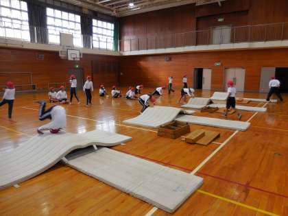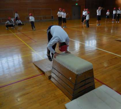 体育の学習で今、とび箱の「台上前転」の学習をしています!