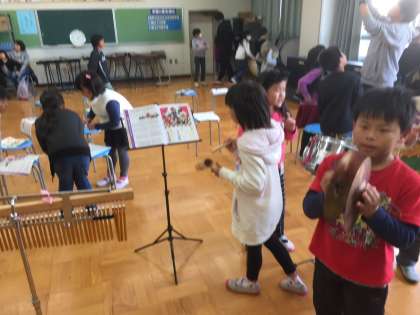グループに分かれて、それぞれのグループで楽器を選び、まほうの音楽を作りました。