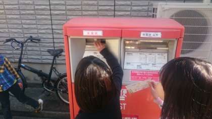 住所と学校名と先生の名前を、郵便局の方が読めるように丁寧な字でゆっくり書いて、
