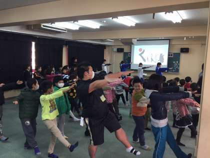 最後に年末に熊本地震の被災地を訪れた時の様子や、地震についてどうしていけばよいのかを子どもたちにわかりやすく紹介していました。真剣に話をする中学生をみて、子どもたちも真剣に聞き入っていました。楽しい時間・真剣に話を聞く時間というように、とても良い時間が流れていたように感じます。中学生の皆さん、ありがとうございました!。