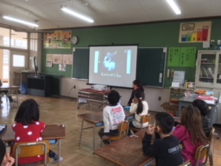 1年生に、おなかの中にいる赤ちゃんの成長について話しました。