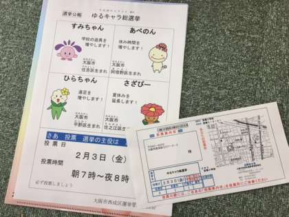 今日は、西成区選挙管理委員会の方に来ていただき、選挙の話をしていただきました。