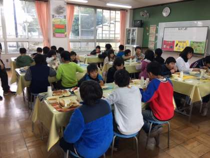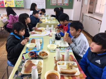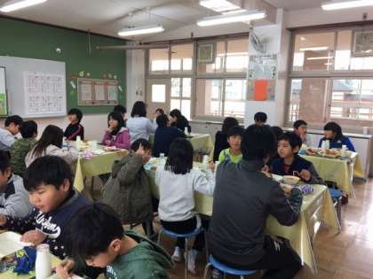 4年生で給食をランチルームで食べるのは今週が最後になります。今日はたくさんおかわりをする子がいました。たくさん食べてお腹もいっぱい!胸いっぱい!思い出いっぱい!(^O^)(^O^)(^O^)