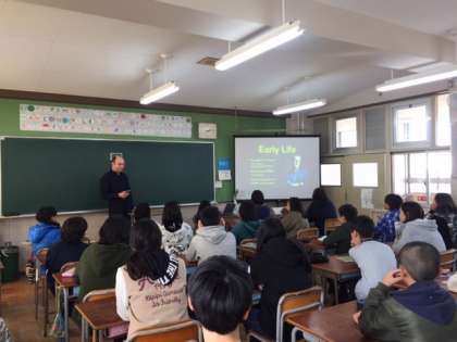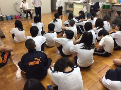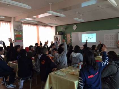 小学校最後のランチルーム。楽しく給食を食べ、今まで学習してきたことのまとめのクイズもして終わりました。