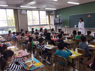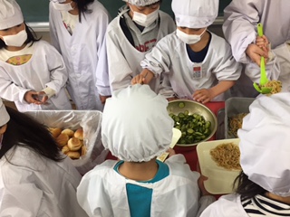 配膳も「こうやって入れるよ」「これくらいの量でね」と優しく声かけしてくれたおかげで、1年生も上手に入れることができました(*^_^*)